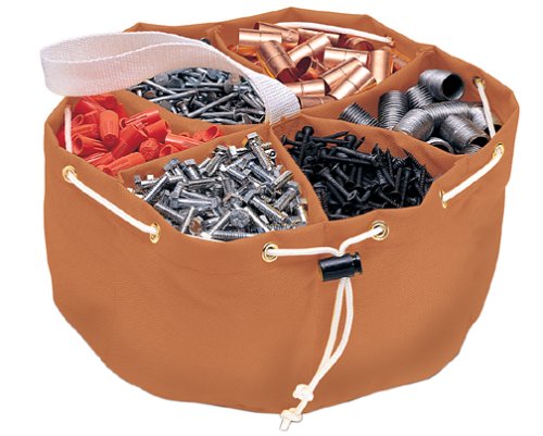 I have several of these for holding screws and other hardware. It is fair to drywall screws of different lengths (I've written on the outside of the bag). I can put 10-20 pounds of screws into the bag, and it still fits in a 5 gallon bucket. I can do the same thing with a bag full of air (coated) screws, nails and another for tires, nails and staples, and a bag for the final nail.