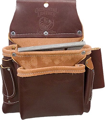Features- * Two Pouch, all leather bag features holders for 2 nail sets, angle square, 1" blade square and a cat's * Fastener Bags hold the tools and fasteners most often accessed with the left hand (nail sets, tri-square, cat's paw, driver bits, angle square, etc.) and are worn on the left side of the body. Specifications- * Pockets & Tool Holders: 8 * Weight: 1.6 lbs. * Main Bag: 9" x 8" * Outer Bag: 7" x 6"