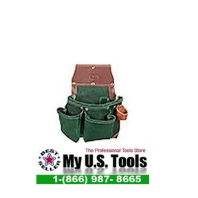 Features- 5612 - Green Builder Tool Bag The best of both worlds! Light-weight hunter green all leather tool bag! Offers external leather hammer holder, double outer bags; internal storage includes one 2003 - Oxy Tool Shield, pockets for level, chisel, drill bits, knife, pencils and lumber crayon. Main bags feature reinforced back wall at stress points to insure years of durable wear. Tool Bags hold the tools most often accessed with the right hand (hammer, pencils, utility knife, chisels, etc.) and are worn on the right side of the body. Product Specifications: Pockets & Tool Holders: 12 Weight: 2.1 lbs. Main Bag: 10"w x 9"d Outer Bag: 5" x 5.5" Not available in left hand model