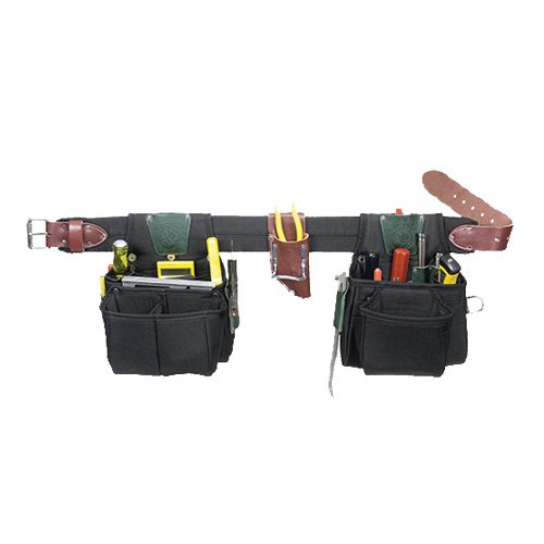 Features- Four new products are featured in one super-lightweight compact package! Just a hair's-breadth over 3 pounds unloaded! Compact bag design is ideal for trim, light framing and finish work. Innovative, round-bottom, full capacity, two-ply foam core main and outer bags hold their shape empty or loaded. * Left side fastener bag holsters a speed square and features Oxy Dual Bag outer bags providing multiple fastener capacity in a compact space. * Right side tool bag features holders for most commonly used tools (hammer, pencils, utility knife, chisels, pry bar, driver bits, etc.). * Each bag comes stock with the very best in protection for tools, bags, and body; the Oxy Tool Shield. Accepts knives, chisels, pliers, etc ... and clips onto any bag or even a pants pocket. Stock up on these! * And there's more, the 5020 - 2-in-1 Tool & Hammer Holder, twice the tool capacity in the belt space of one * Finisher style bags are now available in the Adjustable Series * Innovative Round Bottom Full Capacity Tool Bags * Comes Stock with the 2003 - Oxy Tool Shield * Hand SpecificTool Holder Placement That Maximizes Working Rhythm * Function Engineered for Trim, Finish, and Light Framing Work * 12-oz. Belting Leather with Steel Roller Buckle Combined with Padded Nylon 3" Workbelt for Comfort Specifications- Pockets & Tool Holders: 25 Belt Sizes: SM-XXL Weight: 3.1 lbs. Fastener Bag Dimensions Main Bag: 9.5" x 7.5" Outer Bag: 9" x 6" Tool Bag Dimensions Main Tool Bag: 9.5" x 7.5" Outer Bag: 6.5" x 5.5"