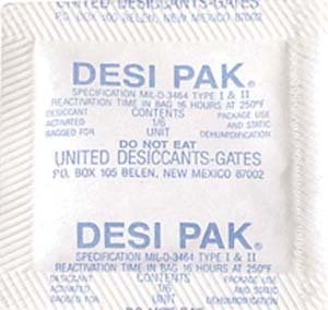 Protect delicate SMDs with desiccants, providing maximum dryness during transportation and storage. Will absorb airborne moisture inside packaging. Envelope made of clean room compatible, sulphur-free Tyvek®. Meets EIA 583 and MIL-D-3464 as required by STD-033. (USA) 2 unit bags - 150 count